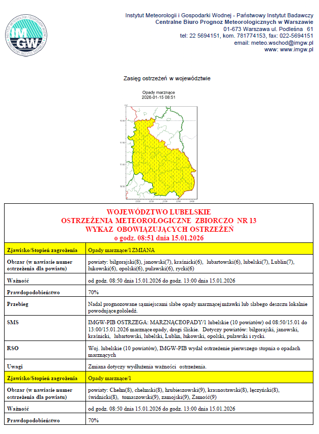 Czytaj artykuł (lektor) Drukuj stronę Wyświetl stronę w formacie PDF Alerty Pogodowe 12 lipca 2024 OPADY MARZNĄCE!