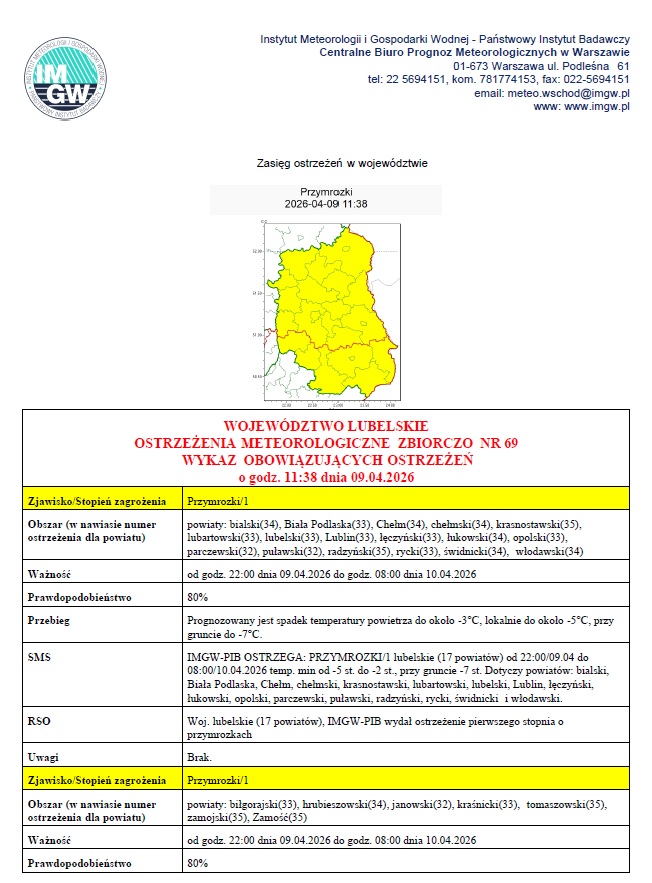 Czytaj artykuł (lektor) Drukuj stronę Wyświetl stronę w formacie PDF Alerty Pogodowe 12 lipca 2024 PRZYMROZKI!