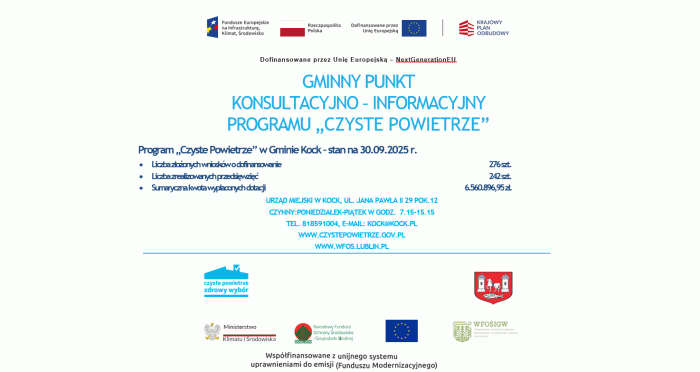 Został utworzony dla mieszkańców Gminy Kock na mocy porozumienia z Wojewódzkim Funduszem Ochrony Środowiska i Gospodarki Wodnej w Lublinie.
