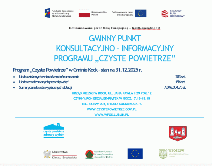 Został utworzony dla mieszkańców Gminy Kock na mocy porozumienia z Wojewódzkim Funduszem Ochrony Środowiska i Gospodarki Wodnej w Lublinie.