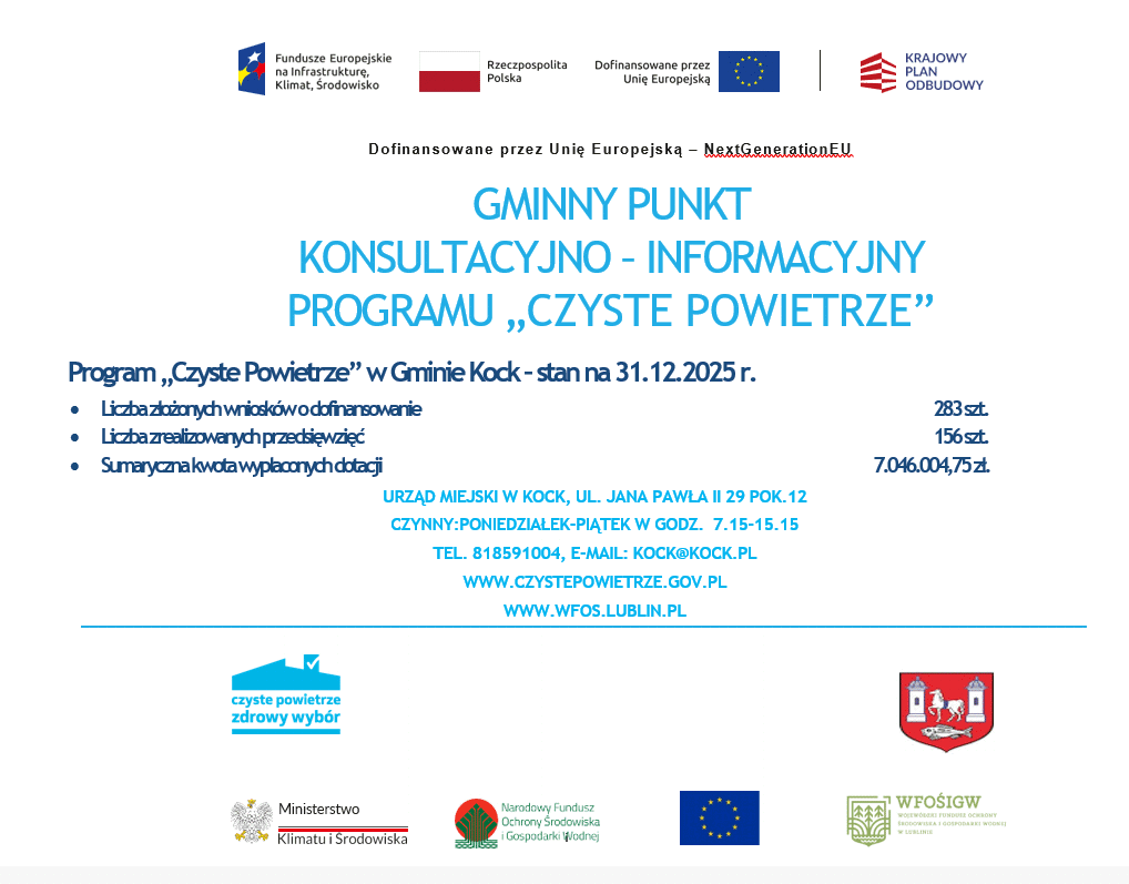 Szczegółowe informacje na temat Programu „Czyste Powietrze” można znaleźć na stronie internetowej Wojewódzkiego Funduszu Ochrony Środowiska i Gospodarki Wodnej w Lublinie: