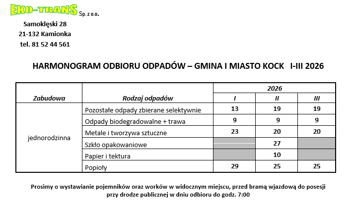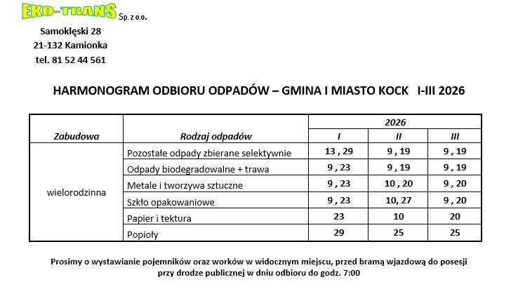 2) wszyscy właściciele domów jednorodzinnych oraz zarządcy wspólnot i spółdzielni mieszkaniowych mają obowiązek złożenia nowych deklaracji na odbiór odpadów segregowanych w terminie do 25 czerwca 2020 r. w Urzędzie Miejskim w Kocku pokoju nr 12 (parter) – Referat Gospodarki Komunalnej i Lokalowej;