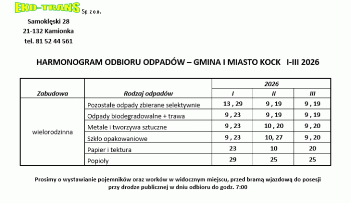 Dodatkowych informacji udziela Referat Gospodarki Komunalnej i Lokalowej UM w Kocku, pokój nr 12, tel. (81) 85 91 004 lub 005, wewn. 45; e-mail: [email protected]