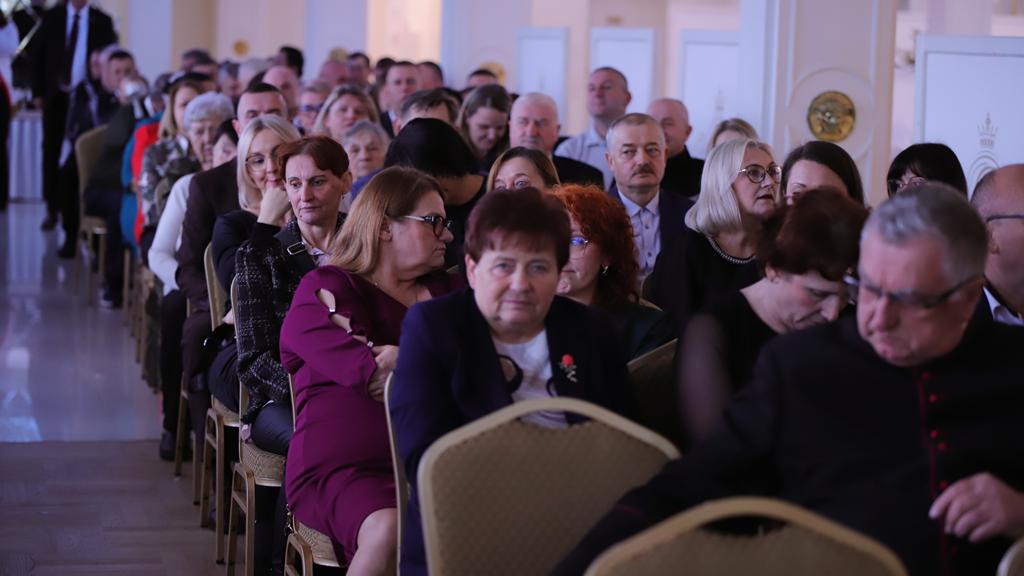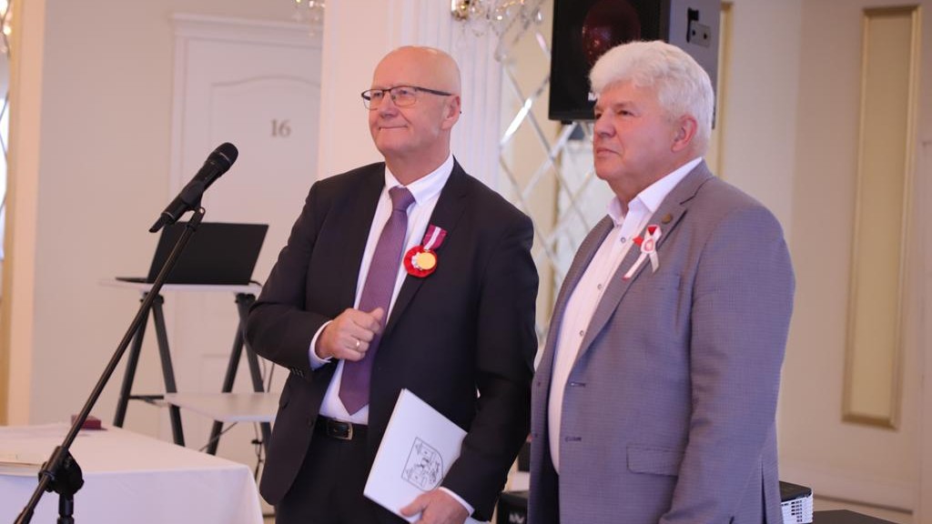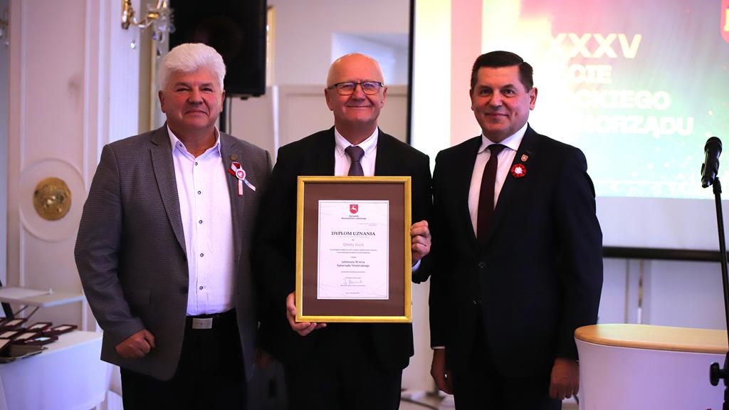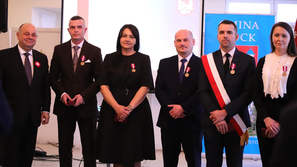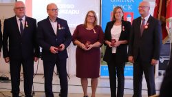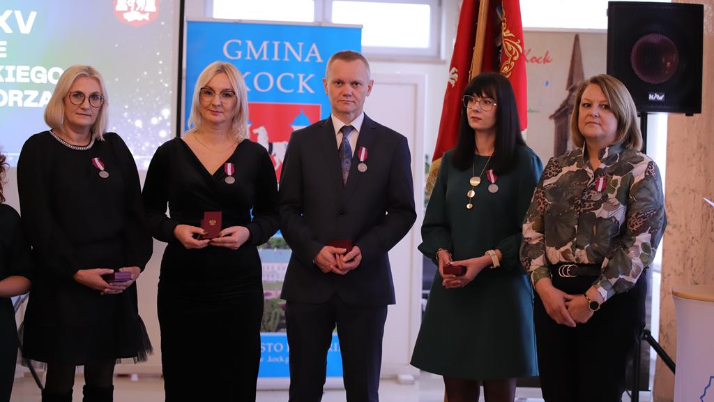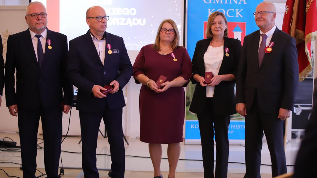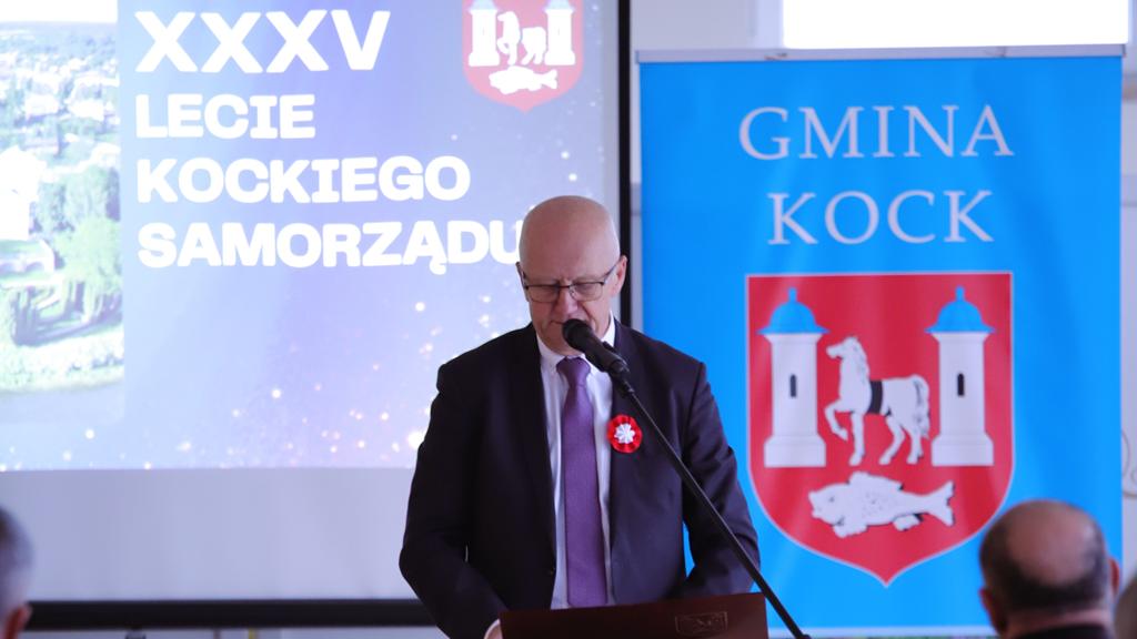 W dniu 11 listopada 2025 r. odbyły się uroczyste obchody Narodowego Święta Niepodległości oraz XXXV – lecia Samorządu Gminy Kock. Rozpoczęło je wystąpienie Burmistrza Miasta Kock Pana Tomasza Futery oraz złożenie kwiatów przy Obelisku Kontruderzenia znad Wieprza 1920 r. na placu A. Jabłonowskiej. Następnie wszyscy zebrani udali się do kościoła parafialnego na mszę świętą dziękczynno – błagalną w intencji Ojczyzny oraz samorządu Gminy Kock, po której zakończeniu odbył się krótki koncert patriotyczny w wykonaniu uczniów Szkoły Podstawowej im. Fr. Kleeberga w Kocku. O godz. 12.00 rozpoczęła się Gala Samorządowa w Hotelu Restauracji „PRESIDENT”. Po wprowadzeniu sztandaru gminy i odśpiewaniu hymnu państwowego została odczytania odezwa Komitetu Honorowego Obchodów Narodowego Święta Niepodległości 11 Listopada w Województwie Lubelskim. Następnie głos zabrał Burmistrz Miasta Kock Pan Tomasz Futera, który powitał gości i dokonał podsumowania dorobku kockiego samorządu na przestrzeni ostatnich 35 lat z wykorzystaniem prezentacji multimedialnej (do pobrania poniżej). Wśród przybyłych gości znaleźli się: p Jarosław Szymczyk – Dyrektor Generalny Lubelskiego Urzędu Wojewódzkiego, reprezentujący Wojewodę Lubelskiego p. Krzysztofa Komorskiego; p. Janusz Bodziacki – Radny Wojewódzki, reprezentujący Marszałka Województwa Lubelskiego p. Jarosława Stawiarskiego; p. Ryszard Wójcik – Członek Zarządu Powiatu Lubartowskiego, reprezentujący Starostę Lubartowskiego p. Jana Sławeckiego; p. komisarz Marek Tarczyński – Komendant Komisariatu Policji w Kocku; panie: Irena Kiryło oraz Aneta Chmielewska, reprezentujące p. Zofię Przeździak – Prezes Banku Spółdzielczego w Łukowie; ksiądz kanonik Andrzej Siedlanowski – proboszcz Parafii p. w. Wniebowzięcia NMP w Kocku; ksiądz Adam Pietrusik – proboszcz Parafii p. w. Narodzenia Św. Jana Chrzciciela w Poizdowie; ksiądz prałat Bogdan Krawczyk; radni wszystkich dotychczasowych kadencji z przewodniczącym p. Januszem Bilskim, obecni i emerytowani pracownicy urzędu miejskiego oraz jednostek organizacyjnych gminy, sołtysi, prezesi OSP z pocztami sztandarowymi oraz kierownicy kockich zakładów pracy. Kolejnym punktem było wystąpienie podsumowujące Pana Janusza Bilskiego – Przewodniczącego Rady Miejskiej w Kocku. Następnie głos zabrali goście: Pan Jarosław Szymczyk, Pan Janusz Bodziacki, Pan Ryszard Wójcik, reprezentantki Prezes Banku Spółdzielczego w Łukowie, odczytując listy gratulacyjne skierowane do samorządu. Potem przemawiali także ksiądz prałat Bogdan Krawczyk, Pan Radosław Oliwniak – kierownik Placówki KRUS w Kocku, Pan Bogusław Orzeł – Prezes Oddziału w Kocku Polskiego Towarzystwa Walki z Kalectwem. Kolejnym punktem było wręczenie pracownikom Urzędu Miejskiego w Kocku odznaczeń państwowych, którego dokonał Pan Jarosław Szymczyk – Dyrektor Generalny Lubelskiego Urzędu Wojewódzkiego. Za wzorowe, wyjątkowo sumienne wykonywanie obowiązków wynikających z pracy zawodowej Medalem Złotym za Długoletnią Służbę odznaczeni zostali: Pani Urszula Anyszek, Pan Tomasz Futera, Pani Dorota Kosior, Pani Mieczysława Naróg, Pan Marek Przystupa, Pan Maciej Tracz. Medalem Srebrnym za Długoletnią Służbę odznaczeni zostali: Pani Dorota Borzęcka-Florek, Pani Aneta Celińska-Fijałek, Pan Paweł Deleżuch, Pan Paweł Guz, Pani Anna Guz-Śmiecińska, Pani Marzanna Kożuchowska, Pani Renata Polisiakiewicz, Pani Beata Przystupa, Pan Piotr Sączek. Medalem Brązowym za Długoletnią Służbę odznaczeni zostali: Pani Anna Bilska, Pan Marek Kępka, Pan Michał Lik, Pani Lidia Sielezińska, Pan Mateusz Trykacz. Wszyscy goście przybyli na galę otrzymali zestaw upominków promocyjnych.