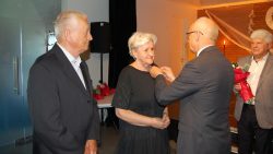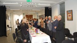 Po części oficjalnej Dostojni Goście pozostali na słodkim poczęstunku, wypełnionym wieloma miłymi wspomnieniami oraz gromkim odśpiewaniem sto lat. Podniosłą chwilę uczczono wznosząc toast symboliczną lampką szampana.